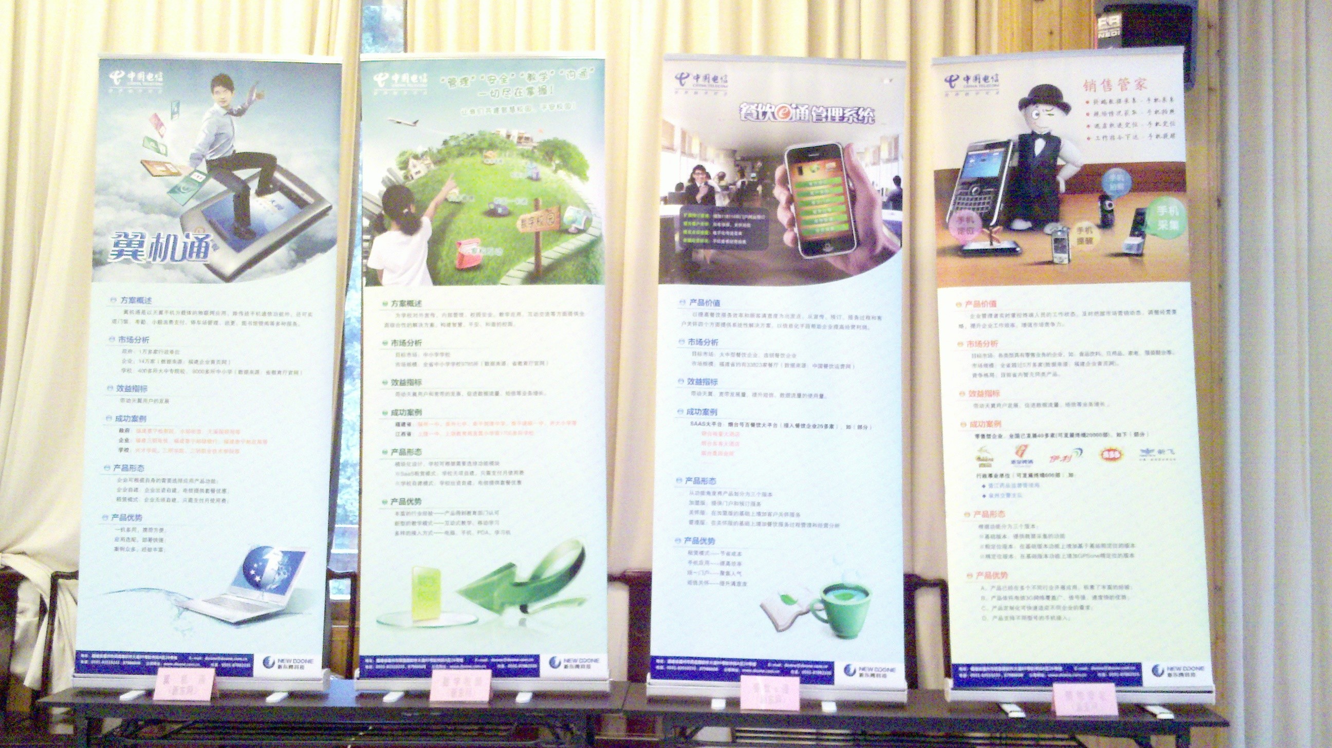 在本次會議,我司選擇了“銷售管家”、“餐飲e通”、“數(shù)字校園”以及“翼機(jī)通” 四個產(chǎn)品參展。在所有企業(yè)參展的產(chǎn)品易拉寶中,我司四個產(chǎn)品的易拉寶,無論內(nèi)容風(fēng)格,還是制作質(zhì)量,都很精良,屢次得到主辦單位福建省電信信推辦林健主任及學(xué)員的肯定與好評。林健主任在會上更肯定了我司在“智慧城市”建設(shè)中的貢獻(xiàn),還特別談到我司與福建團(tuán)省委的合作,給予了較高的評價。