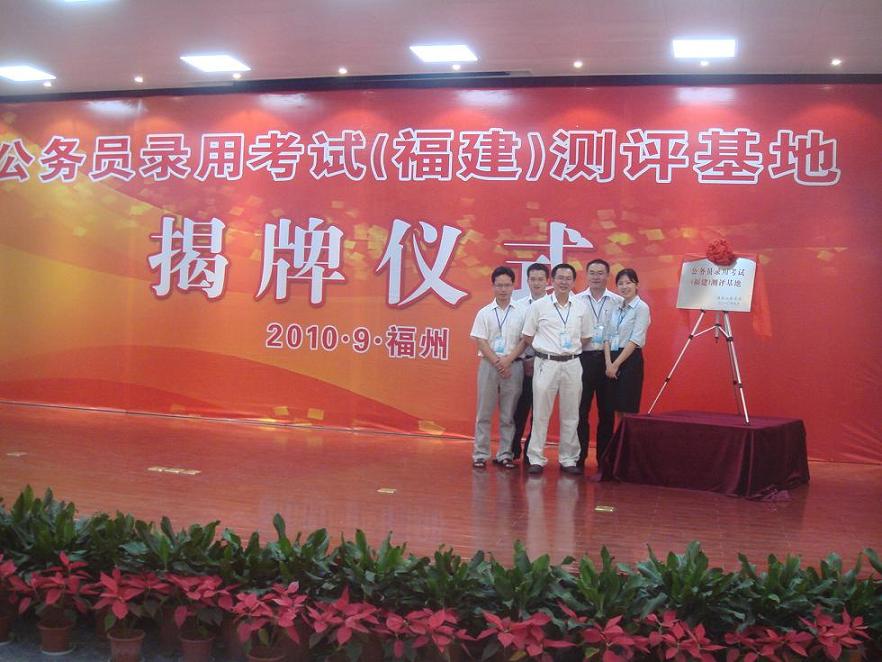 經(jīng)過近2年的籌備和建設(shè),全國(guó)首個(gè)“公務(wù)員錄用考試(福建)測(cè)評(píng)基地”揭牌儀式于2010年9月3日如期舉行。人力資源和社會(huì)保障部副部長(zhǎng)、國(guó)家公務(wù)員局黨組書記、副局長(zhǎng)楊士秋,省委常委、常務(wù)副省長(zhǎng)張昌平,國(guó)家公務(wù)員局副局長(zhǎng)傅興國(guó)等領(lǐng)導(dǎo)出席儀式。各位領(lǐng)導(dǎo)以及隨行專家對(duì)福建“公務(wù)員錄用考試測(cè)評(píng)基地”的建設(shè)情況給予了高度評(píng)價(jià),揭牌儀式取得圓滿成功,省市多家新聞單位也對(duì)這次的活動(dòng)進(jìn)行了報(bào)道。