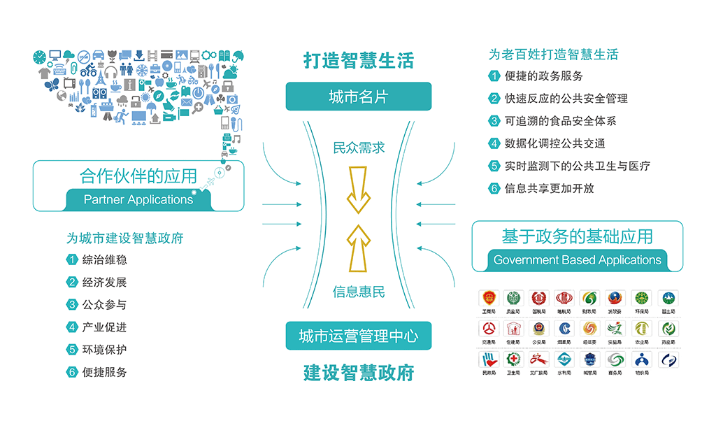 丨概述 智慧城市是在“互聯(lián)網(wǎng)+”的基礎上,通過對城市海量信息數(shù)據(jù)進行實時收集、存儲來構建智能化城市,為城市治理與運營提供更高效、靈活的決策支持與行動工具,為城市公共應用服務提供更人性化、更便捷的創(chuàng)新應用與服務模式,讓現(xiàn)代城市運作更安全、更高效、更便捷、更綠色。 丨特性 智慧城市在架構上分為4層,第一層:城市名片;第二層:行業(yè)應用;第三層:產(chǎn)業(yè)容器;第四層:城市大數(shù)據(jù)中心。 1、頂層設計由政府主導,主要針對城市化的戰(zhàn)略定位、城市特色、資源條件、人口結構及核心產(chǎn)業(yè)做深入的調研及分析,進而設計出一個宜居、可持續(xù)發(fā)展的生態(tài)城市。 2、產(chǎn)業(yè)環(huán)境的智慧化,推動構建普惠化公共服務體系,加快實施信息惠民;支撐建立精細化社會管理體系;促進宜居化生活環(huán)境建設;建立現(xiàn)代化產(chǎn)業(yè)發(fā)展體系;加快建設智能化基礎設施。 3、通過把城市海量數(shù)據(jù)進行脫敏及加工后形成一系列服務能力,構建強大的智慧服務體系,即基礎城市名片(互聯(lián)網(wǎng)+)入口,門戶將在多個重要領域(包括政務、出行、生活、資訊、旅游、文教、健康、溯源、扶貧、眾創(chuàng)等)完成開發(fā)和對接,讓用戶體驗盡善盡美,真正服務到每一位城鄉(xiāng)居民。 4、為了平臺可持續(xù)性的發(fā)展,資源的有效利用,通過平臺內容與運營服務來提升市民與企業(yè)對平臺的黏性。一切運營都是圍繞著智慧城市的本質-服務為核心,為市民提供一個優(yōu)良的生活和工作環(huán)境,為企業(yè)創(chuàng)造一個可持續(xù)發(fā)展的商業(yè)環(huán)境,為政府構建一個高效的城市運營管理環(huán)境。 引入第三方應用共同為市民服務 基于政府的基礎數(shù)據(jù) 丨優(yōu)勢 通過搭建智慧城市產(chǎn)業(yè)園與產(chǎn)業(yè)運營中心,整合政府、企業(yè)和產(chǎn)業(yè)聯(lián)盟的各種資源,運用高新技術手段,扶持與推動中小企業(yè)和傳統(tǒng)產(chǎn)業(yè)信息技術的智慧化,孵化出大量的智慧產(chǎn)品與服務,實現(xiàn)區(qū)域經(jīng)濟的產(chǎn)業(yè)升級和轉型。 丨服務 城市名片平臺(含園區(qū)/商圈/物業(yè)等):一款以“互聯(lián)網(wǎng)+政務便民+生活服務+公益慈善+互動娛樂+企業(yè)服務”為基礎的線上城市綜合體平臺。 新媒體融合應用平臺:以APP+微信公眾號為組合渠道,讓觀眾轉化為客戶,以謀求傳統(tǒng)媒體的轉型,提供電視支付能力及節(jié)目互動活動能力。 預防接種服務平臺:為家長提供兒童疫苗接種預約與提醒服務,讓家長選擇預約接種時間、選擇接種疫苗藥品,定期進行提醒并查詢相關接種疫苗的情況。 智慧社區(qū)平臺:為居委會與街道社區(qū)工作者提供社區(qū)協(xié)同辦公平臺,使社區(qū)與居民之間產(chǎn)生信息互動。 智慧旅游平臺:為當?shù)貐^(qū)域或景點提供旅游信息綜合平臺,提供景點空中720全景及地面360全景圖、景區(qū)電子門票及一卡通服務。 流通追溯平臺:關注食品安全及智能化的菜市場管理,通過對流通的溯源進行產(chǎn)品全流程跟蹤,通過手機客戶端即可追溯產(chǎn)品從生產(chǎn)源頭到消費現(xiàn)場的全過程。 智慧停車場平臺:匯集城市各個公共停車場與綜合體停車場,匯聚各個停車場停車位及實時流動數(shù)據(jù),提供停車費用支付及停車時間提醒,提供場內車位導航。 智慧城市酒店互動平臺:通過移動終端和高清電視機為載體,實現(xiàn)客戶服務及娛樂自助化、酒店管理流程智能化,建造酒店與顧客雙向互動的溝通平臺,為酒店提供營銷、溝通、顧客服務的渠道平臺,為旅客打造住前、住中、住后服務的核心能力平臺。 智慧產(chǎn)業(yè)聯(lián)盟:通過整合產(chǎn)業(yè)鏈上下游企業(yè),進而帶動當?shù)刂腔刍脑斓目焖侔l(fā)展。 智慧產(chǎn)業(yè)園區(qū):中小企業(yè)需要有政策、金融等各方面的支持,政府同樣也會需要一個平臺落地,而智慧城市產(chǎn)業(yè)園區(qū)恰好起到了一個承上啟下的作用。完善的產(chǎn)業(yè)鏈條、適宜發(fā)展的產(chǎn)業(yè)環(huán)境再加上政府搭建的服務平臺三者結合,讓整個產(chǎn)業(yè)園區(qū)走上正軌。 丨案例 “智慧中山”、“智慧倉山”、“智慧福州”、“數(shù)字鼓樓”