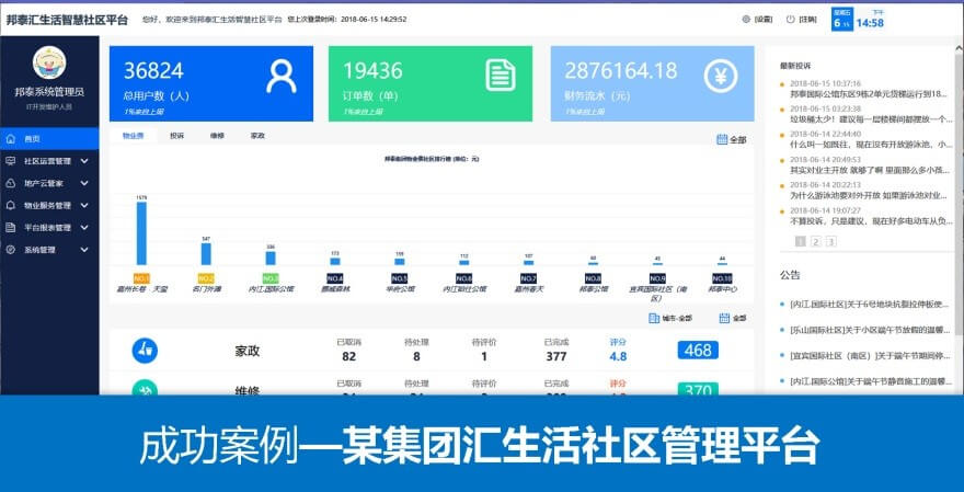 丨概述 智慧社區(qū)解決方案以物業(yè)為核心,覆蓋居民、物業(yè)、周邊商家、地產(chǎn)開發(fā)商,打造智慧社區(qū)生態(tài)圈,挖掘社區(qū)范圍內(nèi)外資源潛力,建設(shè)高效、信息發(fā)達(dá)、經(jīng)濟(jì)繁榮的新型現(xiàn)代化社區(qū)服務(wù)。“One家”是新東網(wǎng)自主研發(fā)、運(yùn)營(yíng)的智慧社區(qū)產(chǎn)品,為社區(qū)業(yè)主提供吃、喝、玩、樂、康、健、娛、文、教、公“一站式”服務(wù),為物業(yè)和地產(chǎn)增加多元化收益,提高業(yè)主滿意度、降低運(yùn)營(yíng)成本。 丨優(yōu)勢(shì) 提供“一站式社區(qū)平臺(tái)”,為社區(qū)業(yè)主提供高效社區(qū)服務(wù)、便捷生活體驗(yàn)和行使業(yè)主權(quán)利,為物業(yè)和地產(chǎn)增加多元化收益、提高業(yè)主滿意度和降低運(yùn)營(yíng)成本。 丨案例 1、四川邦泰物業(yè)有限公司樂山分公司 2、中國電信股份有限公司成都分公司 3、新希望地產(chǎn) One家社區(qū) 丨概述 由新東網(wǎng)科技自主研發(fā)和運(yùn)營(yíng)的智慧社區(qū)平臺(tái),以物業(yè)為核心,覆蓋居民、物業(yè)和周邊地產(chǎn)商,打造智慧社區(qū)生態(tài)圈,挖掘社區(qū)范圍內(nèi)外資源潛力,為社區(qū)業(yè)務(wù)提供“一站式”服務(wù);為物業(yè)和地產(chǎn)增加多元化收益,提高業(yè)務(wù)滿意度、降低運(yùn)營(yíng)成本。 丨成功案例